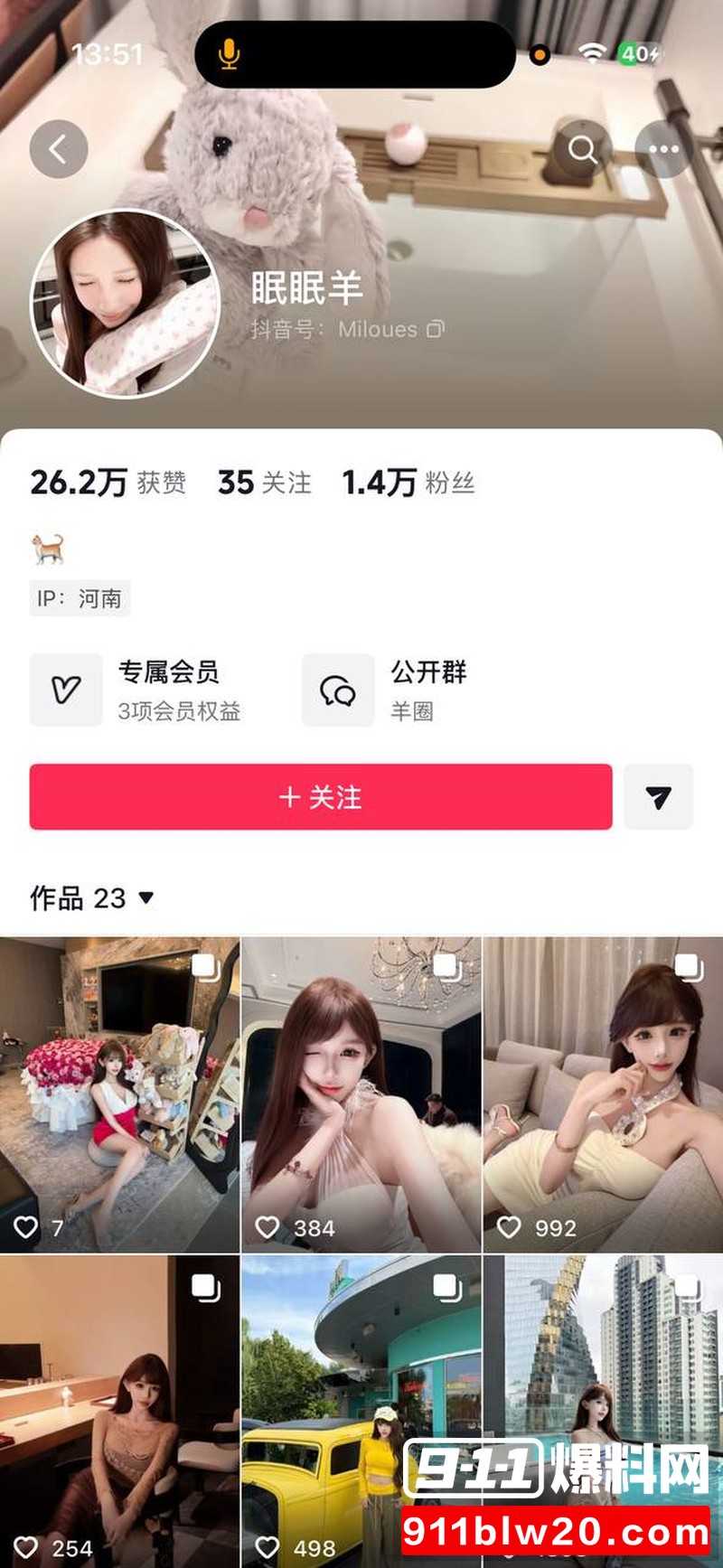 抖音昵称眠眠羊(全名杨琳)在酒店被金主爆操的私密互动视频突然流出,视频中她完全放开,各种姿势都非常大胆,看得人直呼反差太大。平时她在社交平台上以甜美可爱、高颜值示人,这次视频却展现出完全不同的一面。网友看完后议论纷纷,这波视频流出后,她的个人主页信息和联系方式也被顺带曝光,热度直接冲上顶流。