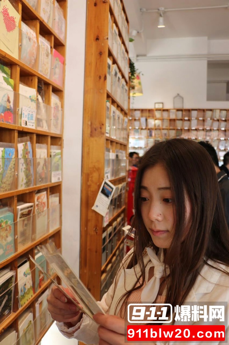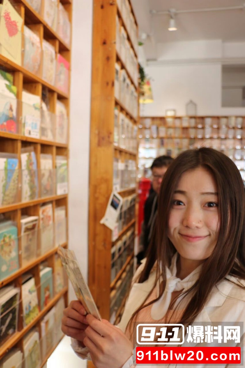 女主在书店认真挑选明信片,眼神专注又安静,穿着白衬衫显得特别文艺清新。还有一张她对着镜头微笑,背景是满墙的卡片,整体给人一种乖巧懂事的感觉,结果性爱视频一出,反差直接把人看傻眼。