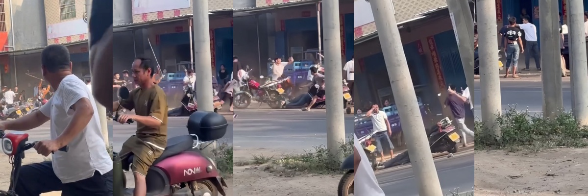 该文章由全网吃瓜发布,转载请注明来源并附上原文链接: 精神小伙街头大乱斗,车锁链子各种甩鞭,一小伙被直接打趴在地,现场混乱引发路人围观 !