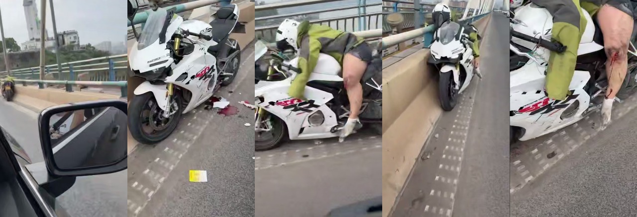 该文章由全网吃瓜发布,转载请注明来源并附上原文链接: 太惨了!女骑士骑白摩托撞护栏飞出去,左腿膝盖直接撞烂血肉模糊,鲜血流一地,摩托严重变形,现场救援紧急