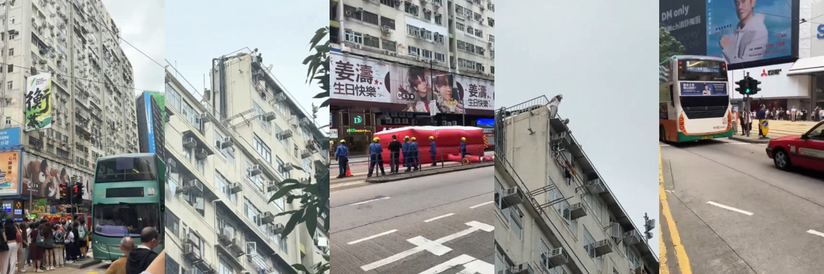 该文章由全网吃瓜发布,转载请注明来源并附上原文链接: 香港铜锣湾惊魂一跳:高楼边缘生死瞬间!