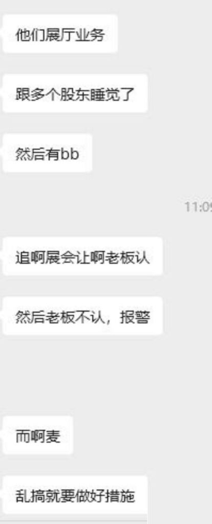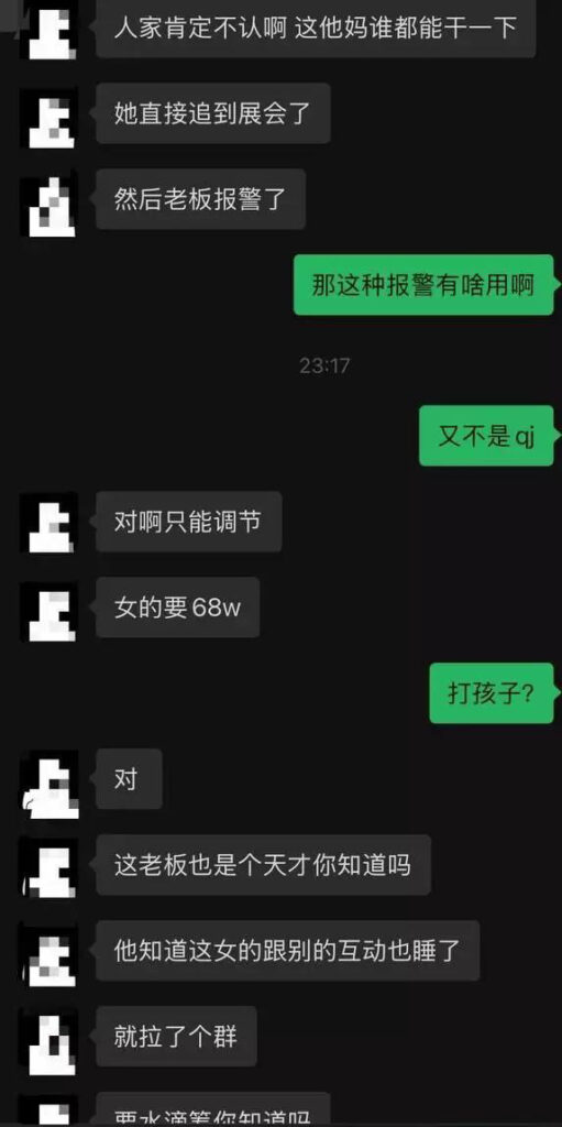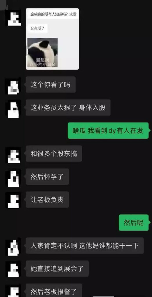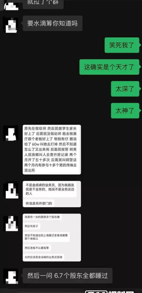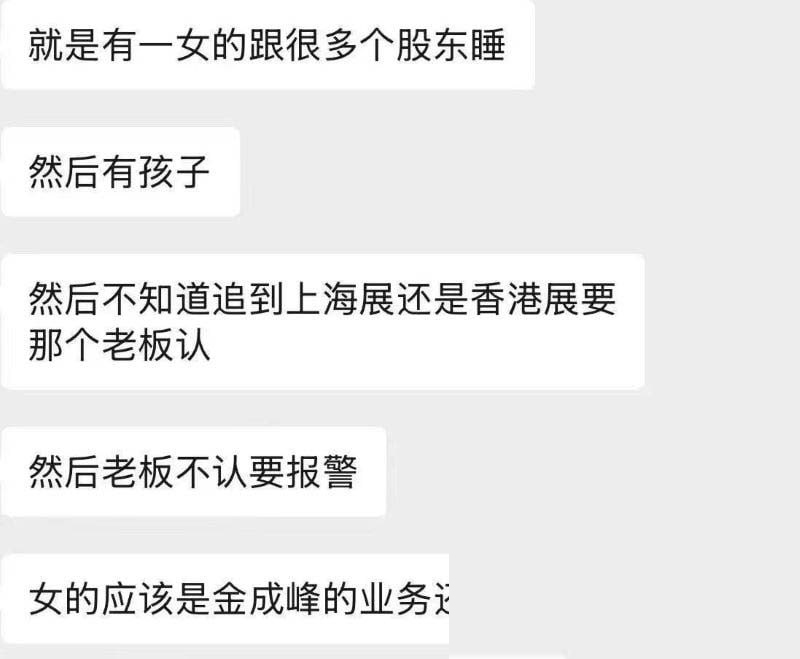 广东金成峰展会上演狗血剧疑云,公司下属女职员被曝与多名股东纠葛,以肉身入股与股东换取利益,没想到怀孕后,竟然向几位股东索要68万元天价分手费失败,不过这一闹,反倒先把自己的糗事曝光了