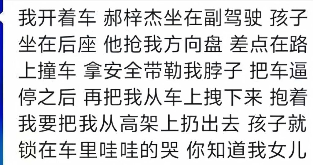 贝斯手郝梓杰前妻痛斥渣男家暴出轨,高速上抢夺方向盘,差点害死前妻和自己的孩子