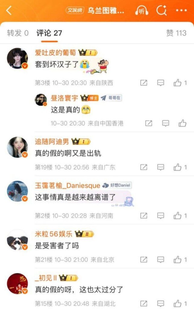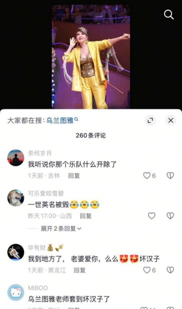 该文章由全网吃瓜发布,转载请注明来源并附上原文链接: 民族流行乐歌手乌兰图雅出轨家暴男包养贝斯手郝梓杰