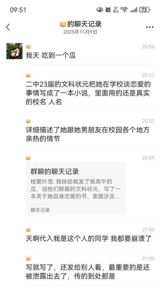 该文章由全网吃瓜发布,转载请注明来源并附上原文链接: 南宁二中星轨小说爆火文科女状元真实经历编写校园野战攻略