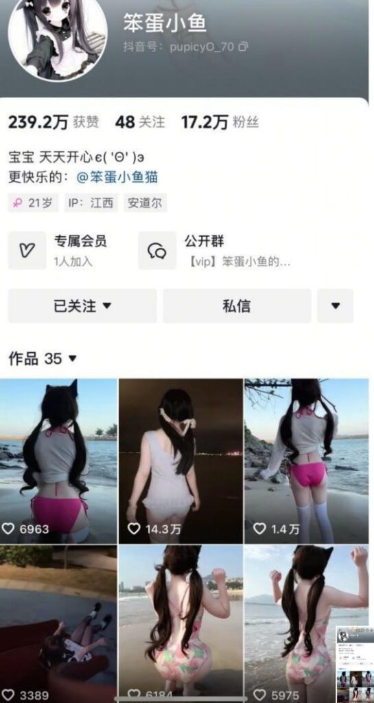 17万粉丝抖音擦边网红笨蛋小鱼超反差嫩妹私拍福利小视频
