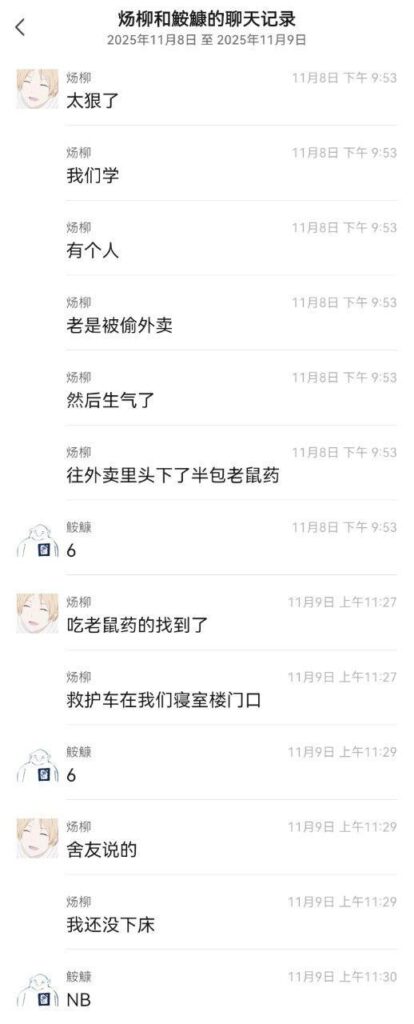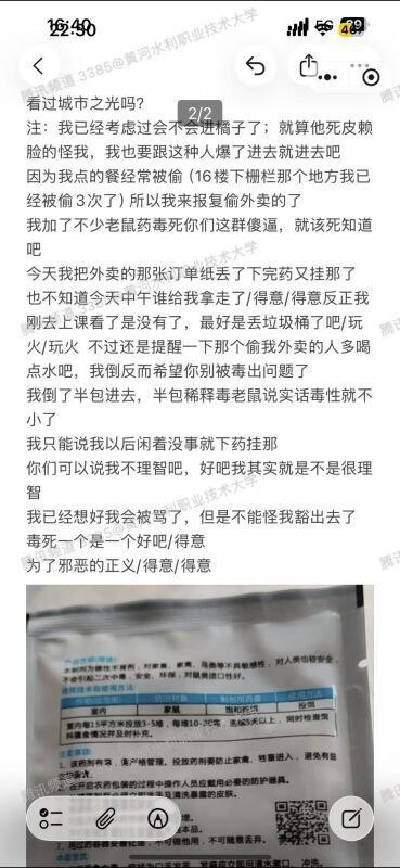 该文章由全网吃瓜发布,转载请注明来源并附上原文链接: 校园大逃杀黄河水利职业技术大学外卖频繁被偷下药报复事件