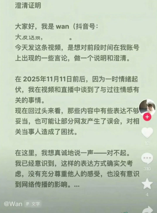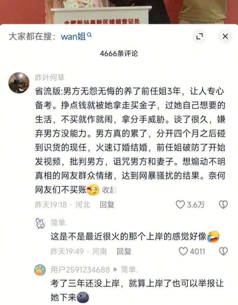 该文章由全网吃瓜发布,转载请注明来源并附上原文链接: 分手四个月就结婚抖音wan姐痛批下头前男友反被实锤捞女本质