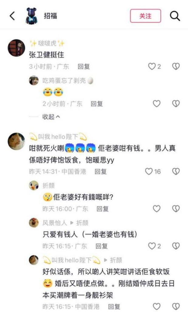 苏永康不时伸手轻抚女方后背,目光柔和、情意绵长,宛若恋人相对;围观路人纷纷直呼“太明显了”。