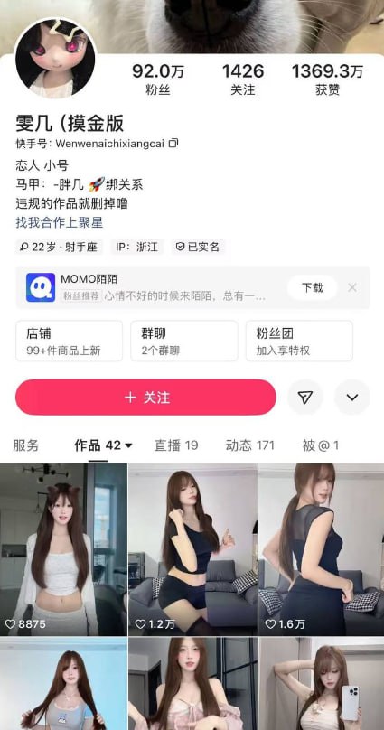 该文章由全网吃瓜发布,转载请注明来源并附上原文链接: 92万粉丝快手纯欲擦边女网红雯几线上浅浅擦边线下重拳出击