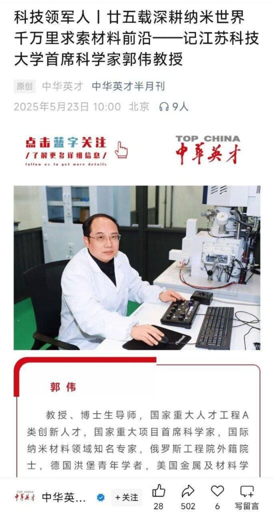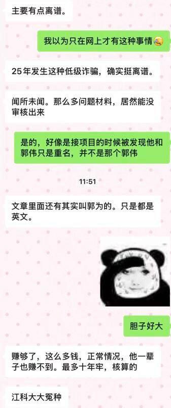 该文章由全网吃瓜发布,转载请注明来源并附上原文链接: 首席教授高中学历江苏科技大学抽象大瓜郭伟学术造假