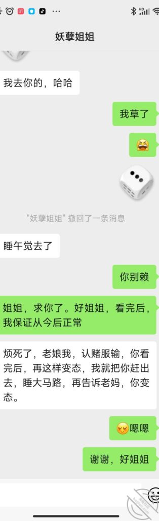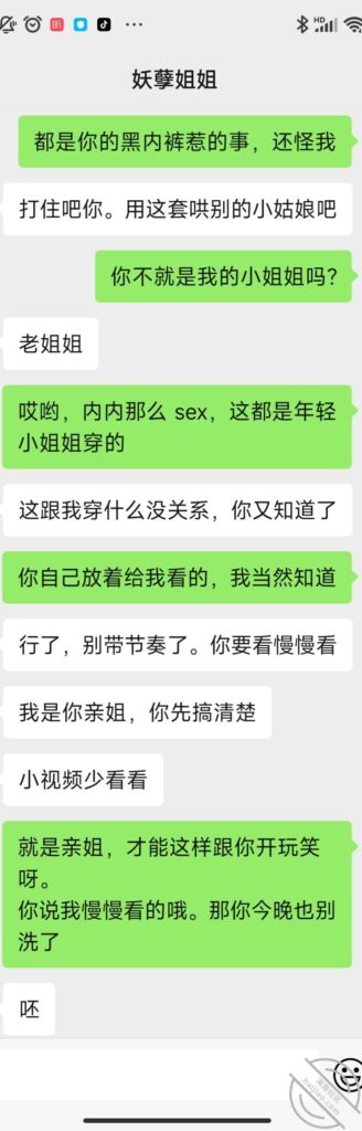 兄弟们,突飞猛进,没想到进展一下子起飞了。因为姐姐昨天内裤事情,中午我去试探了下,然后挑逗姐姐,没想到有了下文。