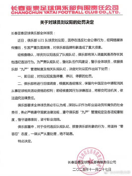 国足长春亚泰u21球员刘议阳再度被锤10分钟出轨视频曝光