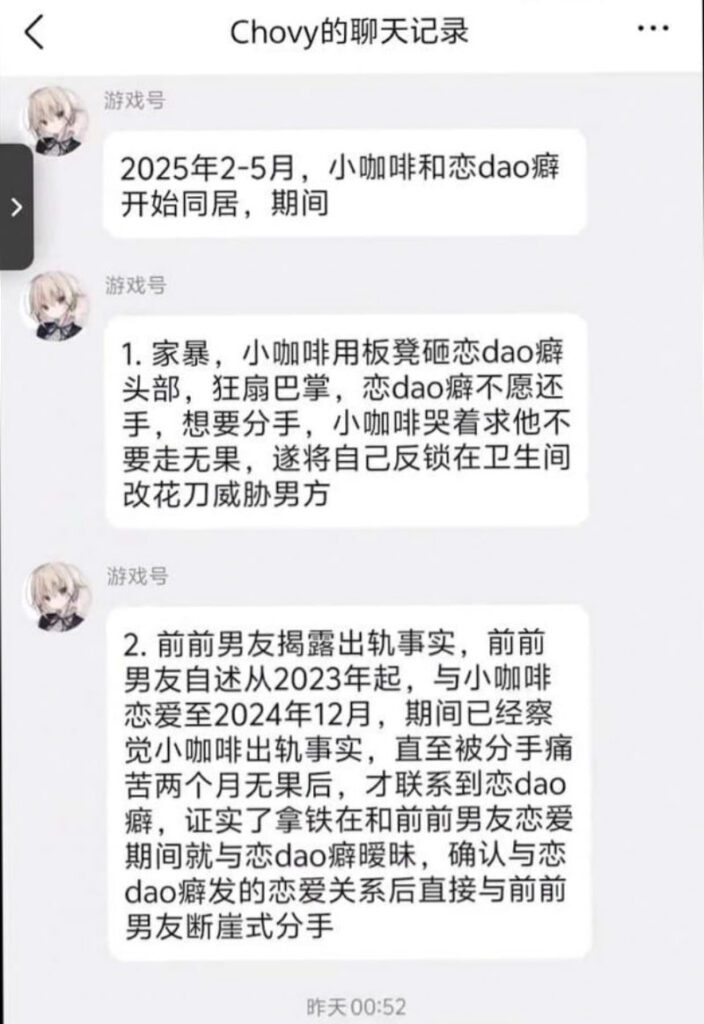 该文章由全网吃瓜发布,转载请注明来源并附上原文链接: 二次元甜妹实为心机女b站87万粉丝coser拿铁ouo家暴出轨事件