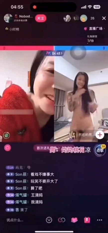 抖音直播新高度擦边网红然后的然直播间pk失败上演脱衣舞