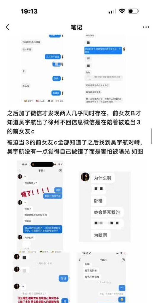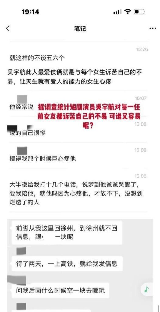 前女友爆料的记录,这位小鲜肉也是软板硬吃的典型代表了。更离谱的,吴宇航母亲甚至还包庇默许自己儿子的行为。