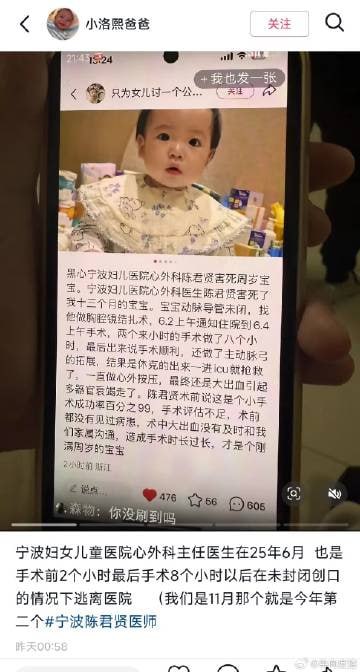 网传视频实名举报宁波大学附属医院陈贤君微创手术害死婴儿