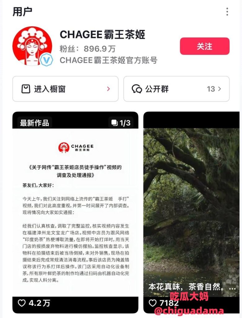 事件已经如此,霸王茶姬官方也是开展公关,发布通告澄清