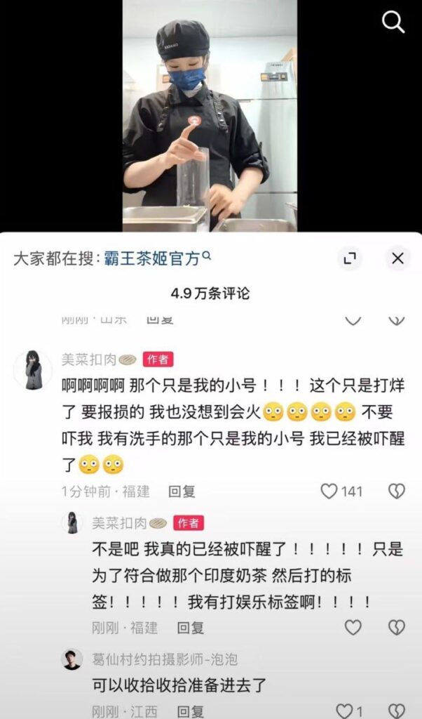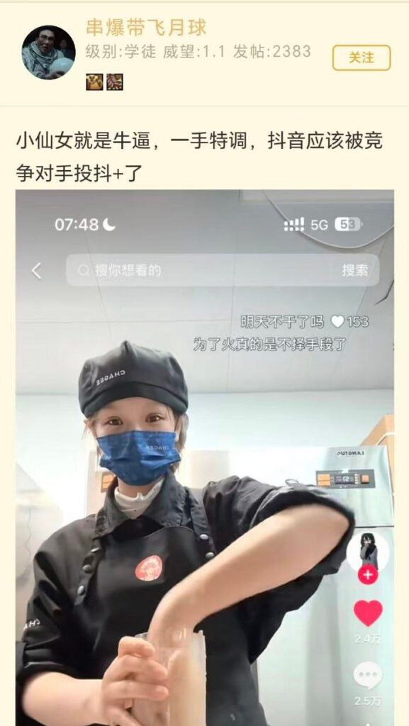 虽然很多扔茶店员工都在恶搞这一tag,拍视频搞抽象,但唯独霸王茶姬这一波最为致命