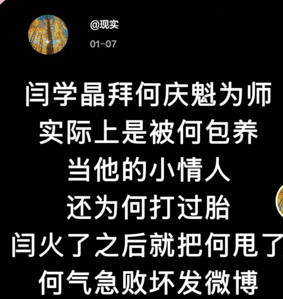 曾一手扶持闫学晶与孙涛的导演何庆魁曾在微博中怒斥二人的背信弃义行为。