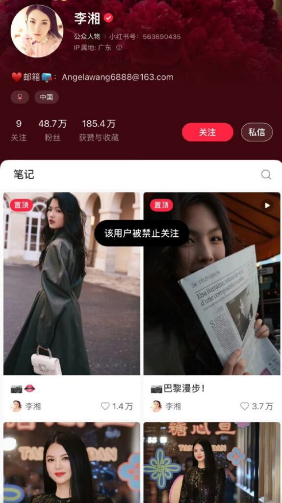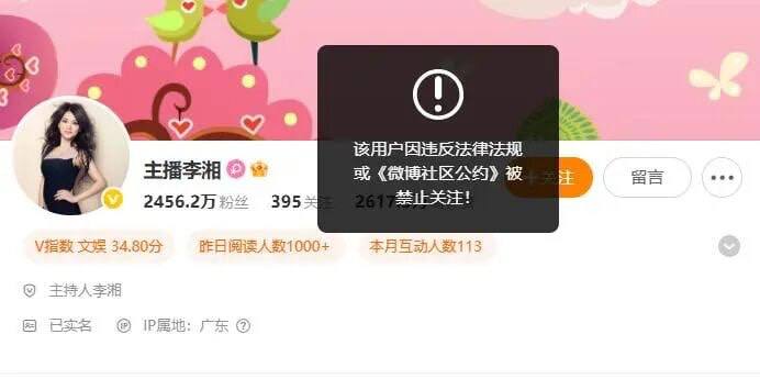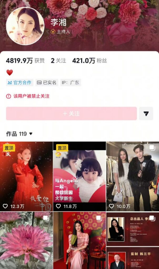 内地综艺一姐李湘被全网封禁多个平台账户禁言