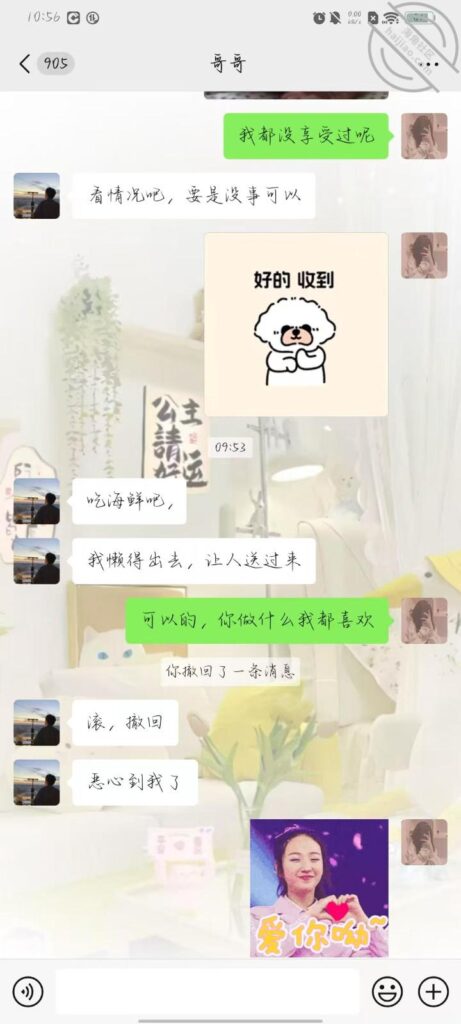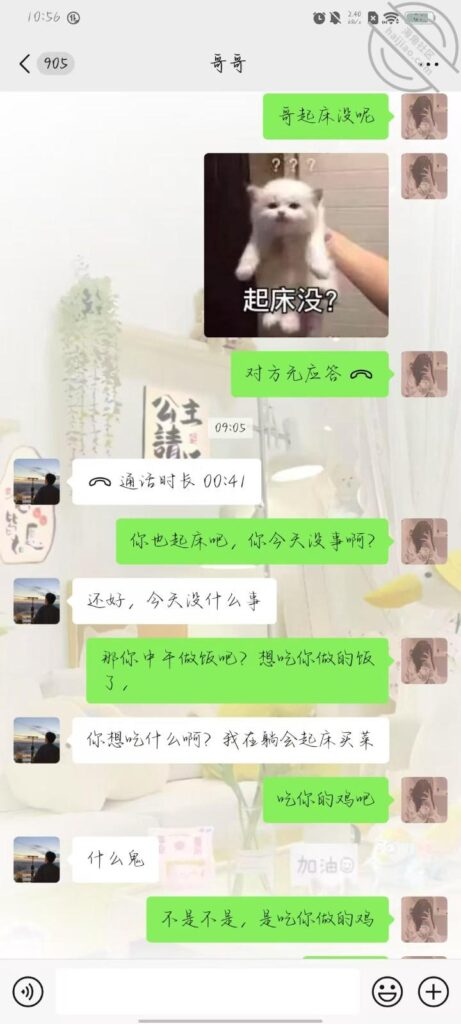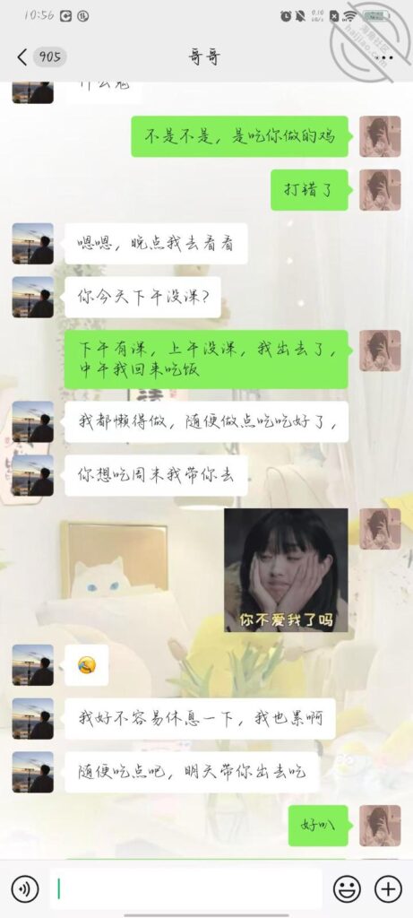 今天早上给哥哥发信息,他还没醒,给他打电话也没接,九点多才回我电话,我给他说中午想吃他做的饭了,然后估计打错, 说想吃他鸡吧