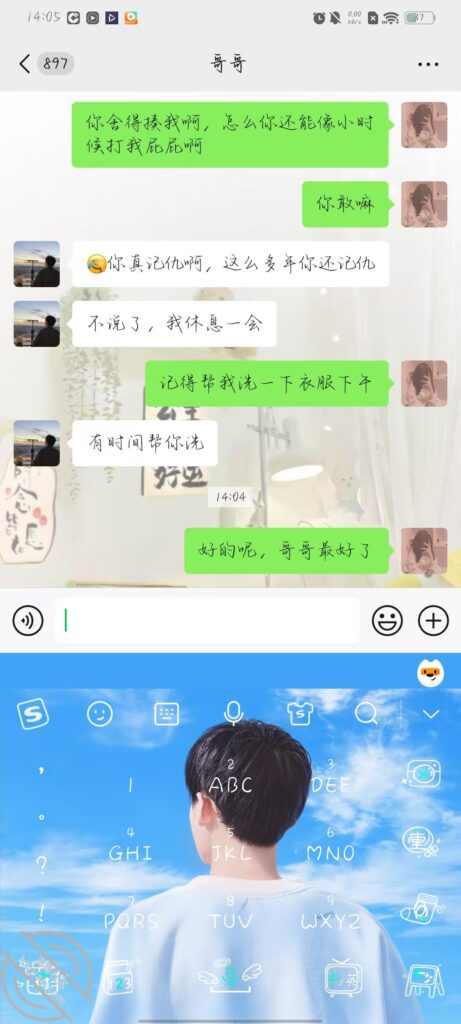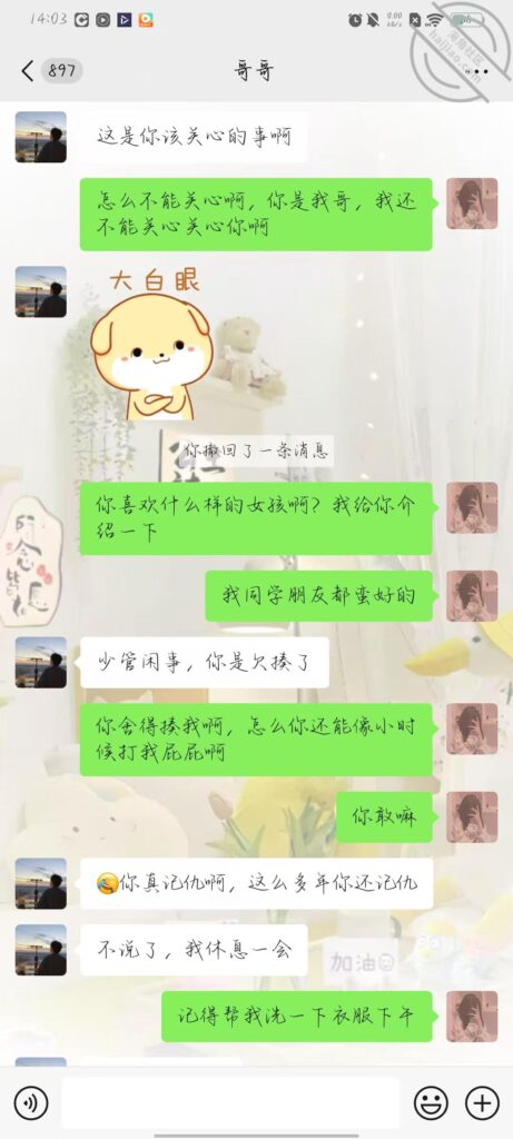 我还和哥哥说,想找个他这样的男朋友,找不到就不嫁,让他养我,希望哥哥能懂,