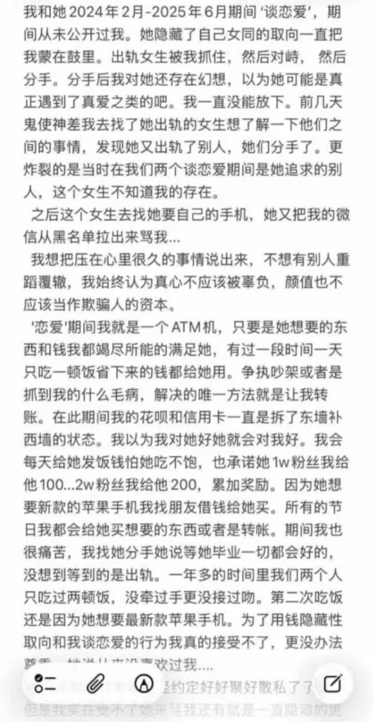 为了自证前男友晒出的消费与转账记录