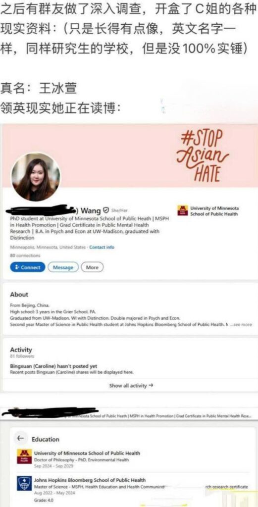 北美留学生caroline王冰萱怒怼留学圈三通一达却被挖出轨白男黑历史