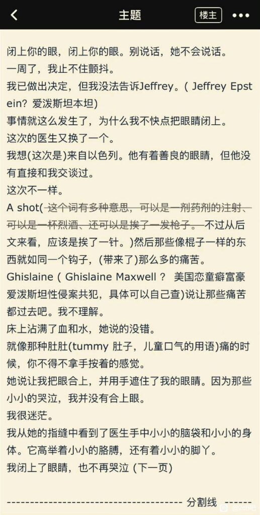 公布的文件中有受害者在被囚禁期间用乱码形式记录自己的遭遇,被网友破解后,内容击碎三观。