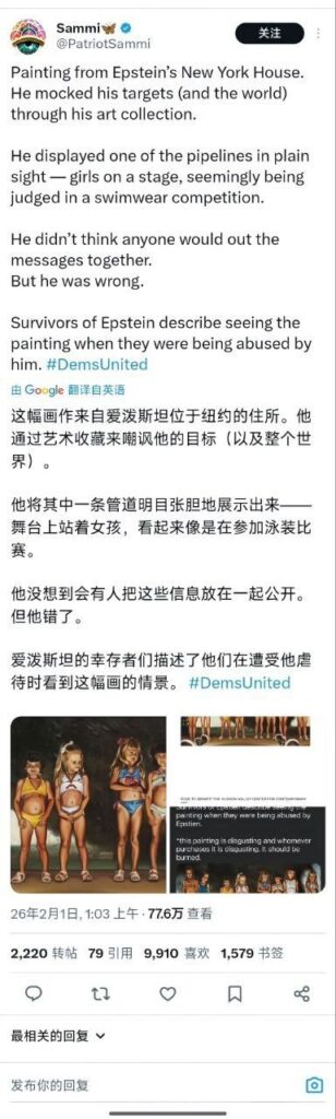 与之公布的还有关于爱泼斯坦的收藏品种极具争议的画作