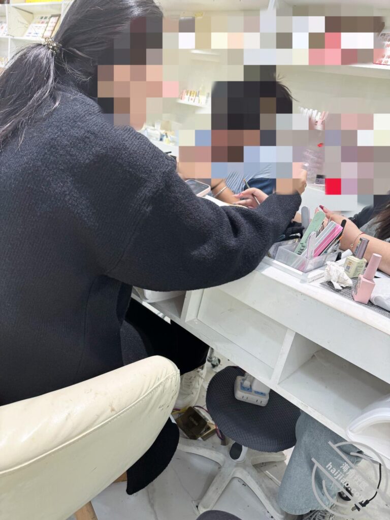 夏天的感觉真好啊~!一屋子的丝袜美女 什么样的都有,还有个少妇穿着蕾丝连衣裙短的都快看到她内裤了,还好妹妹在做指甲看不到我看美女,都给我看硬了。做完指甲妹妹累了我们就回去了。