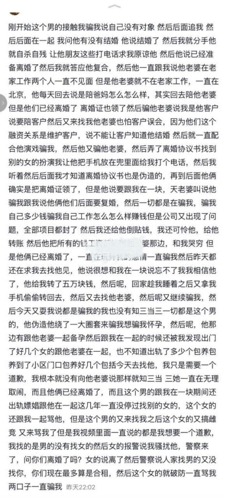 该文章由全网吃瓜发布,转载请注明来源并附上原文链接: 北京博远华兴男高管韩静婚内出轨pua多名女子被联合举报