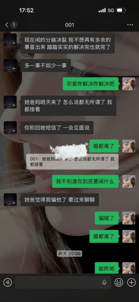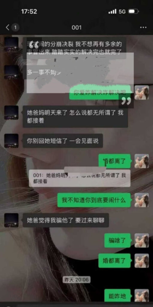 爆料称北京博远华兴高管韩某婚内出轨:先谎称“单身”加微信,得手后改称已婚“马上要离婚”并出示疑似伪造的离婚协议;见面曾转5万元称“打车费”,女孩睡着后又悄悄退回。随后被曝隐瞒婚姻状况,与多名女性保持暧昧并以PUA手段欺骗发生性关系。
