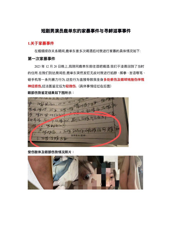 62万粉丝抖音短剧男演员鹿单东被前妻爆料婚内出轨家暴