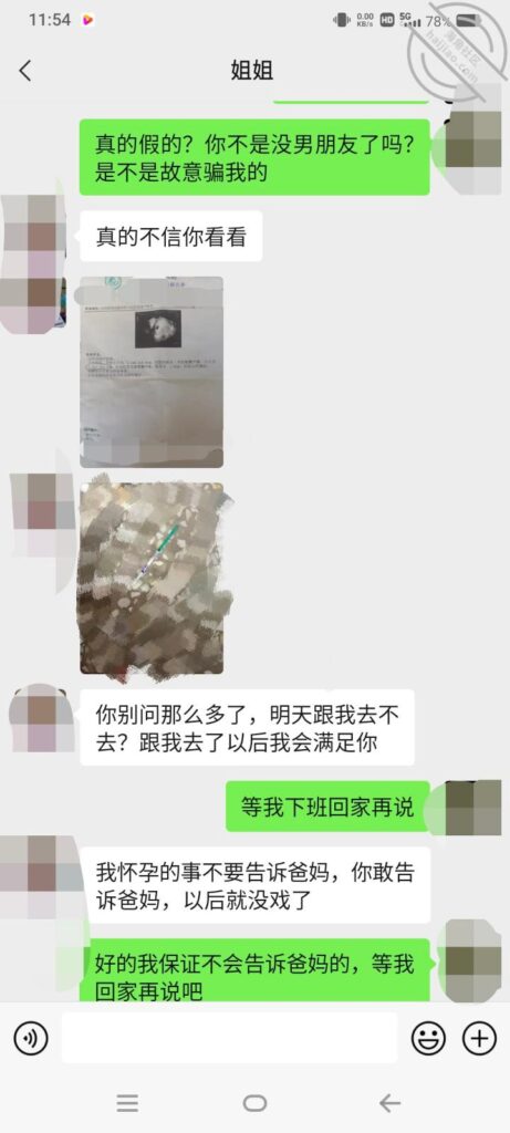 本来最近准备想干姐姐的,通过我几天的纠缠姐姐同意让我干一次了,说巧不巧姐姐突然发信息问我在哪呢,当时我还在上班,看见姐姐突然问我在哪,我想干姐姐的机会来了,当时无比的激动,再看到下面的几句话让我很失落,姐姐告诉我他怀孕了。。