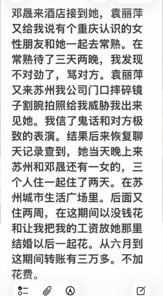 苏州名硕南七工程部袁丽萍脚踏五只船被男友实锤海王