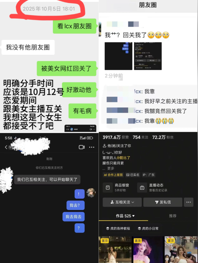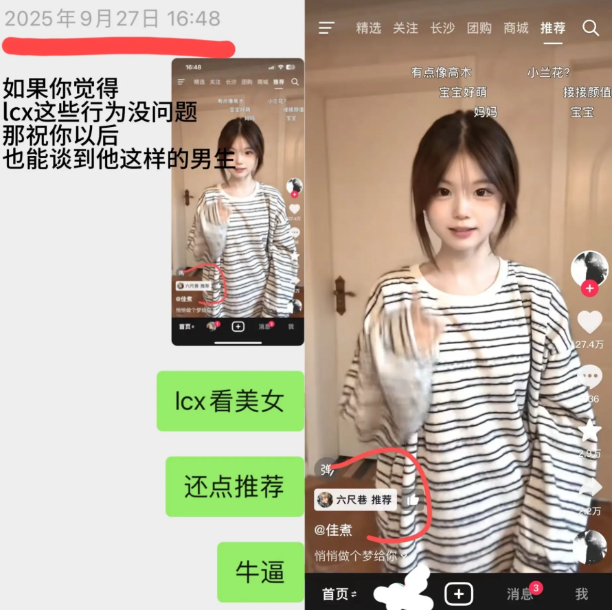 长沙网红圈这瓜震碎三观:一名34万粉丝的长沙校园抖舞博主,靠舞蹈和校园分享被粉丝称“靠谱男友”“理想型”。私下却频繁撩搔多人,甚至有人妻私信“老公今晚不在家”。更气人的是恋爱期间,他的新女性好友不避嫌,在朋友圈频繁点赞互动、送礼比对女友更勤快,甩掉女友后无缝接替。