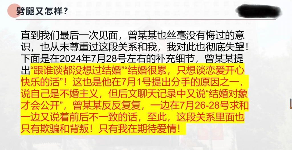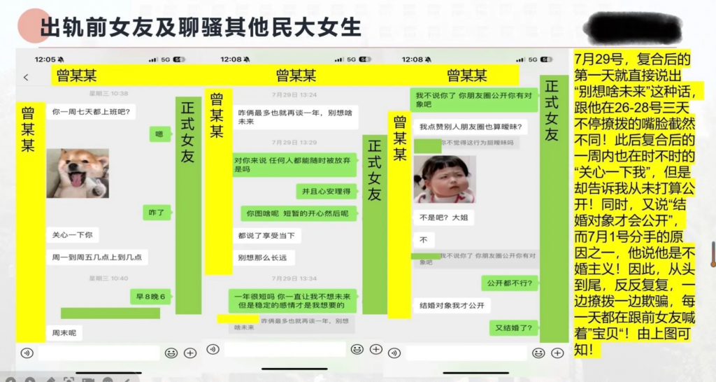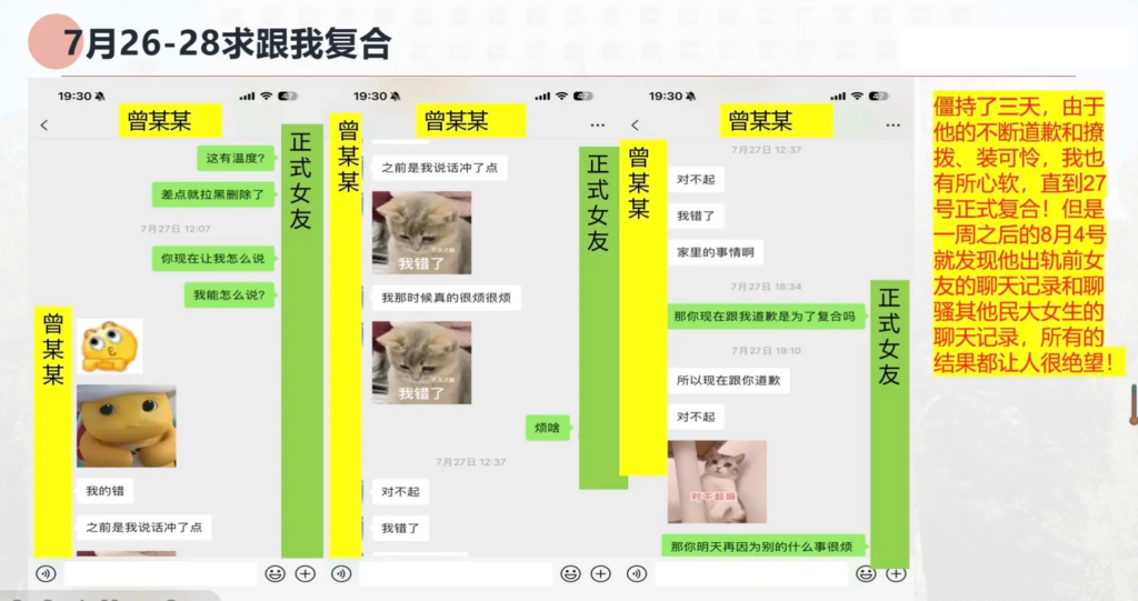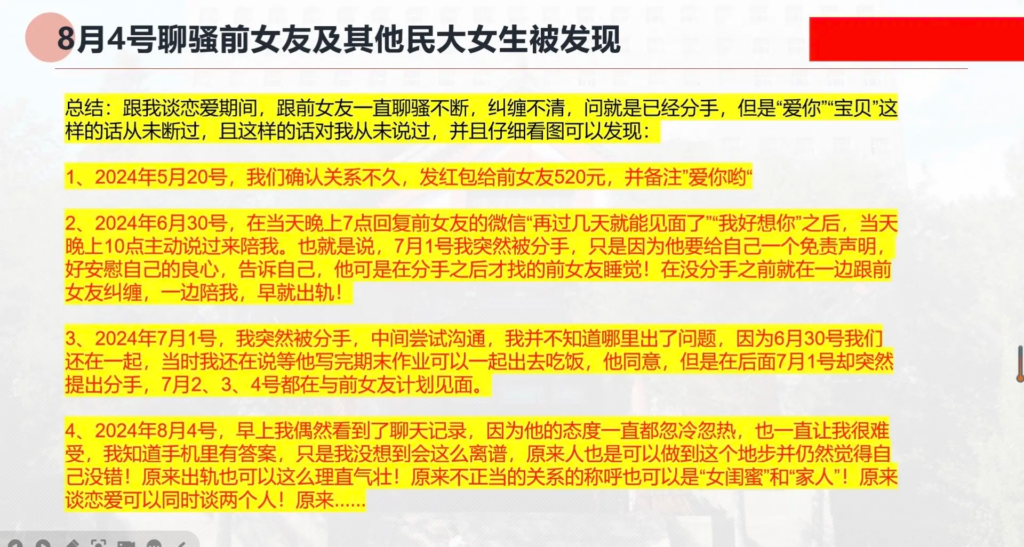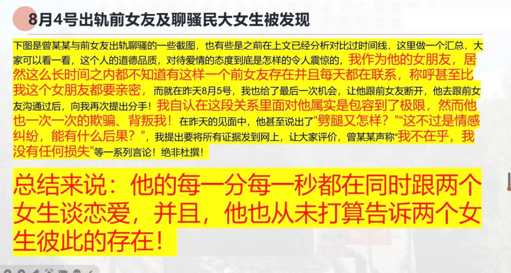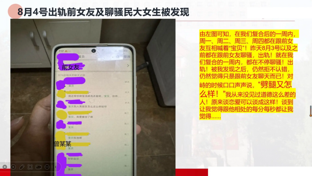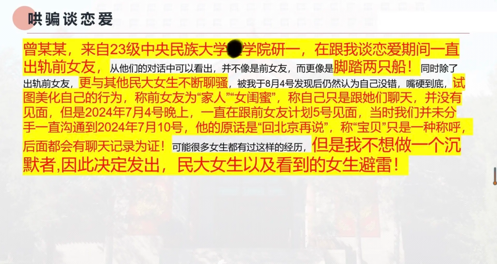 33页长文ppt曝光民族大学研一曾某出轨前女友搔扰校友