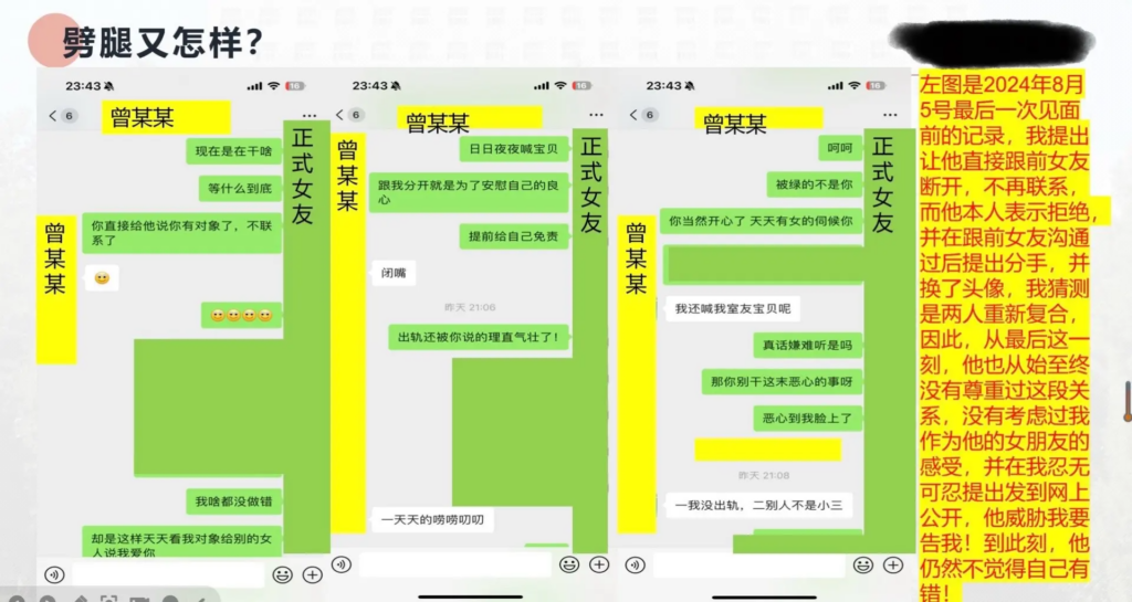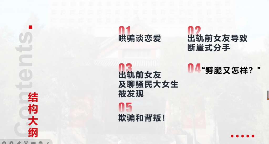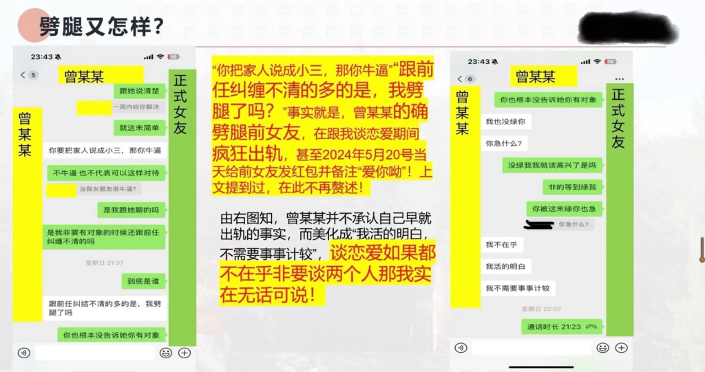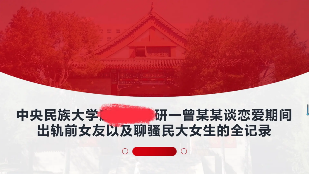 该文章由全网吃瓜发布,转载请注明来源并附上原文链接: 33页长文ppt曝光民族大学研一曾某出轨前女友搔扰校友