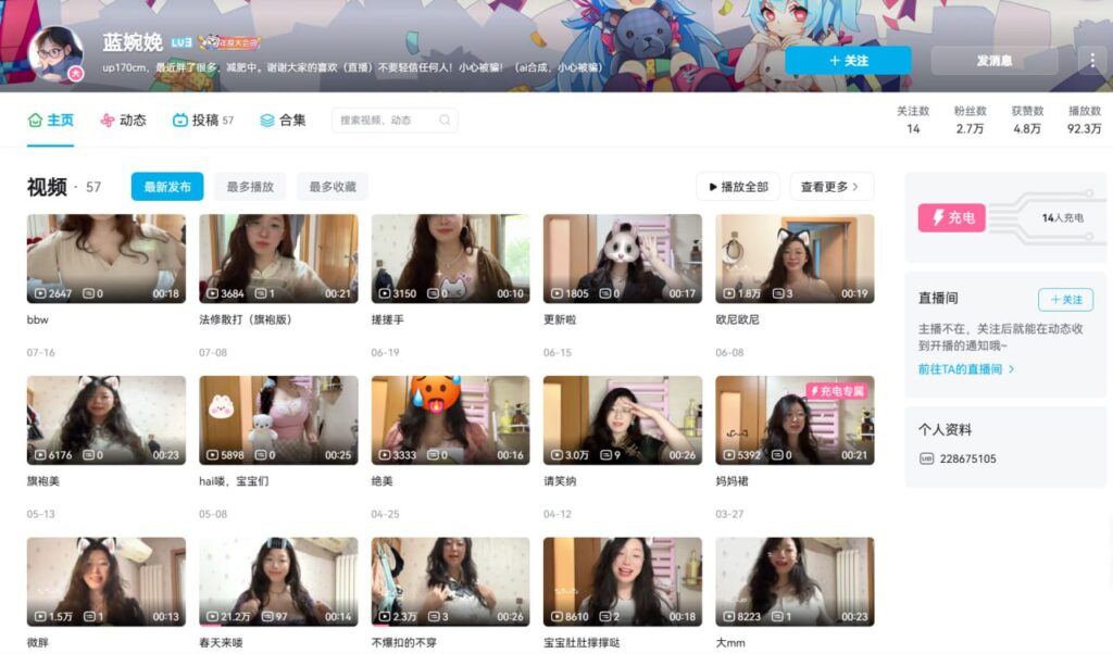 该文章由全网吃瓜发布,转载请注明来源并附上原文链接: b站3万粉丝二次元博主腾腾不失眠私密福利视频外流