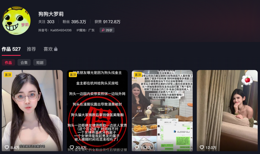 该文章由全网吃瓜发布,转载请注明来源并附上原文链接: 400万粉丝抖音网红狗头洛璃双视角呼啦圈视频外流
