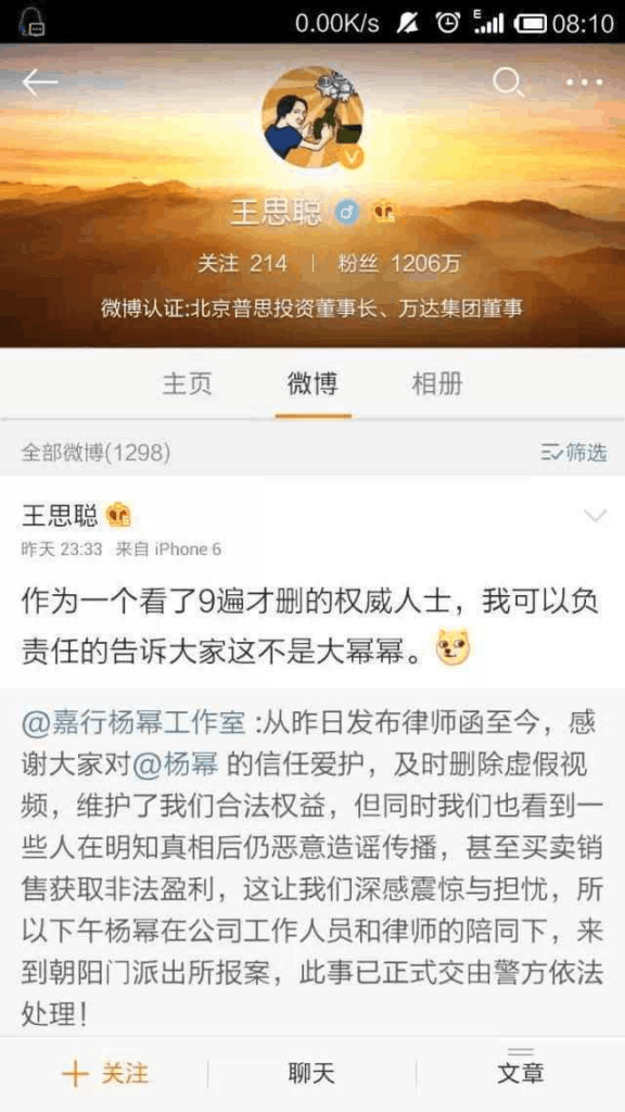 其中事件曾流传一段不雅视频,其中女主角与杨幂颇为相似,但如果是瓜老师的老粉都知道,这个视频,瓜老师很早就做过澄清。