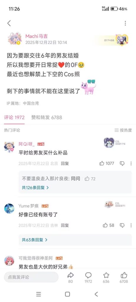该文章由全网吃瓜发布,转载请注明来源并附上原文链接: 30万粉丝B站高人画师Machi马吉首套限制级写真流出