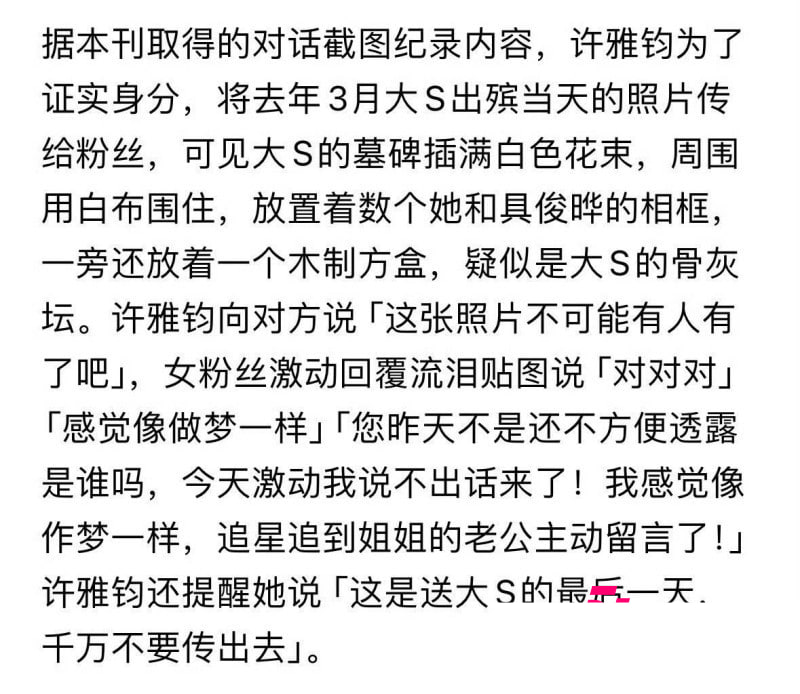 台媒今日再度爆出重磅消息:小S的丈夫许雅钧被指在大S(徐熙媛)于2025年病逝并出殡当日,通过微信与一名二十多岁、就读于北京的台湾女生私下搭讪。据称,许雅钧以“感谢你替徐家发声”为由,主动提出与该女生见面。