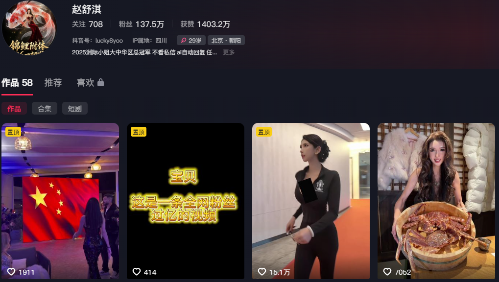 该文章由全网吃瓜发布,转载请注明来源并附上原文链接: 138万粉丝抖音超模赵舒淇塌房极速之夜一穿四