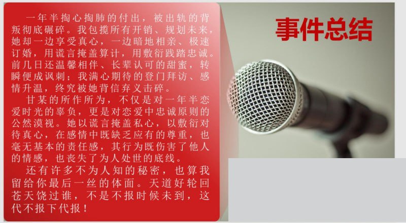 该文章由全网吃瓜发布,转载请注明来源并附上原文链接: 江西宜春29页PPT怒锤渣女甘甜深情错付捞女