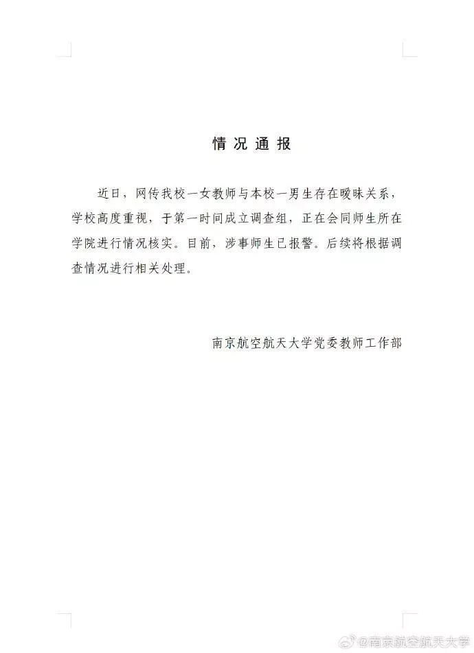 该文章由全网吃瓜发布,转载请注明来源并附上原文链接: 南京航空航天大学劲爆大瓜44岁女教授官宣22岁男大