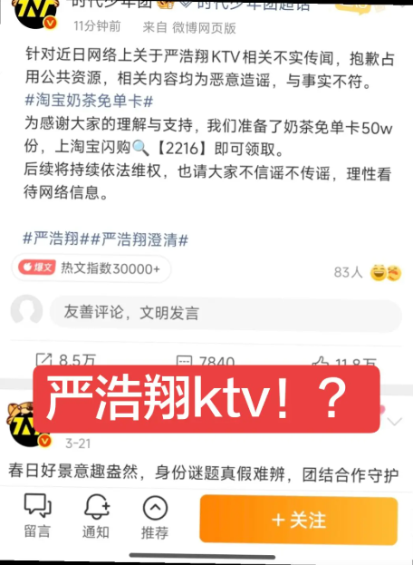 该文章由全网吃瓜发布,转载请注明来源并附上原文链接: 新生代小鲜肉时代少年团成员严浩翔苏梅岛KTV视频外流人设塌房