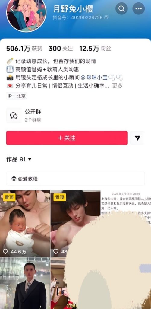 近日,多名女性集中爆料称,抖音拥有12万粉丝的“宝藏扔爸”网红月野兔小樱,在妻子怀孕期间刻意隐瞒已婚身份,营造“单身、纯情”的人设,与多名女性暧昧纠缠。爆料指出,他疑似借助网红身份和个人影响力,有针对性地接近异性,将不负责任的情感与性关系视作常态,完全无视家中即将生产的妻子及家庭责任。随着多位当事人联合公开相关证据,这位长期维持正面形象的网红,其虚伪面目也逐渐被揭开。